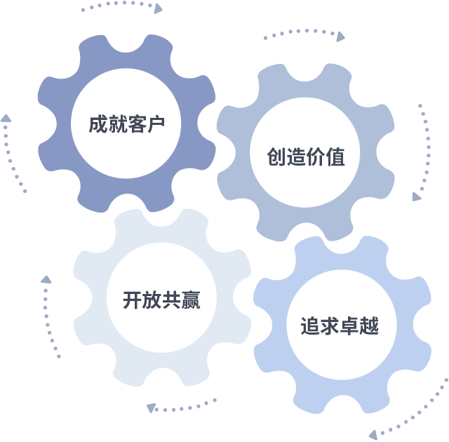 成就客户是一切决策的出发点,创造价值是衡量所有工作的标准,追求卓越是优发国际做事做人的态度,开放共赢是优发国际的格局也是最终的结果。价值观的齿轮环环相扣,推动着组织里的每个人不断向前。
